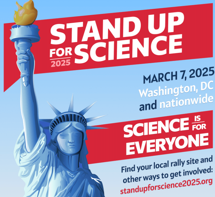 The Stand Up for Science rally will begin at noon on March 7 (Friday) in Washington, DC. We will be front of the Lincoln Memorial. If you’re not in the DC area, you can find the closest rally here.